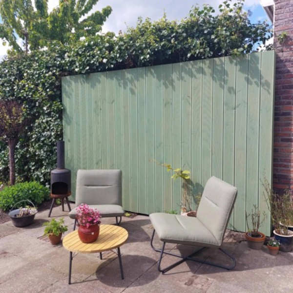 Voor langdurig mooi hout is de juiste verf belangrijk. Moose Färg biedt watergedragen, matte houtverf die in het hout trekt en het laat ademen. Dit voorkomt houtrot en schimmelvorming en behoudt de natuurlijke uitstraling van het hout. De matte kleuren geven je schutting een rustige, natuurlijke look.